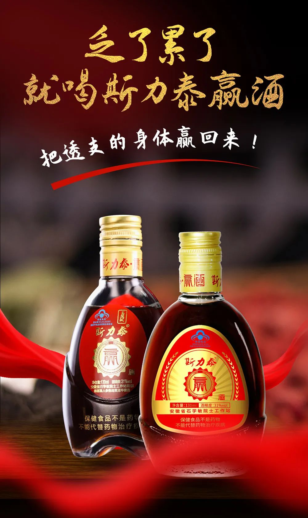 斯力泰赢酒精选“人参、熟地黄、淫羊藿、枸杞、山药”等道地药材与清香型白酒实现有机融合,常饮可抗疲劳、强身体、增免疫,达到自然滋补的效果。