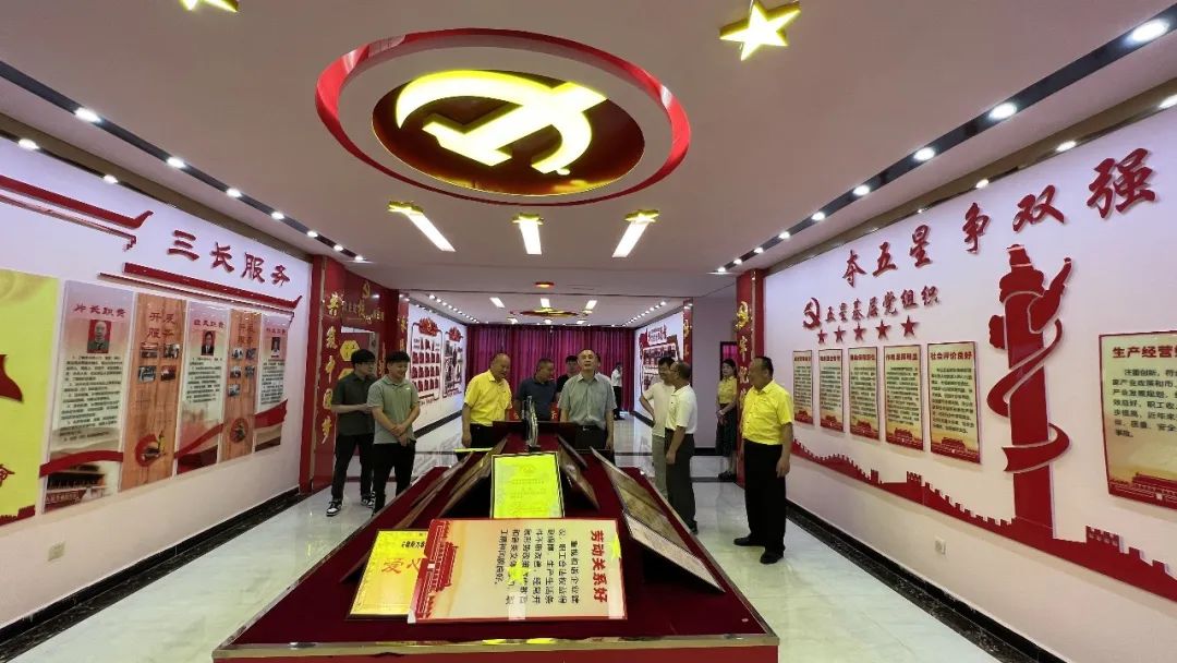 随后,大家共同来到集团党建活动中心,马董事长向吴祖送一行介绍了斯力泰集团党建活动开展情况及社会公益方面所做出的努力。自2013年起,斯力泰集团便积极组织爱心捐赠、贫困帮扶、社区慰问等社会公益活动,先后荣获“亳州市五星基层党组织”、“亳州市先进党组织”、“安徽省双强六好党组织”等荣誉称号。斯力泰集团充分发挥党支部的战斗堡垒作用,充分发挥党员的先锋模范作用,通过党建引领实现企业的高质量发展。