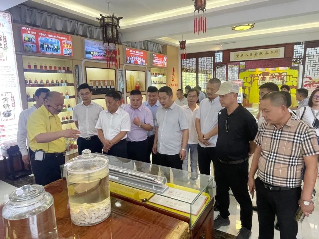 尤其重点介绍了集团明星产品——斯力泰赢酒。马总热情的为温州商会考察团成员斟上一杯斯力泰赢酒,通过“闻、触、品”斯力泰赢酒感受酒之醇厚,品尝后大家纷纷感慨:“果然有一股浓浓的人参味”!斯力泰赢酒由安徽省石学敏院士工作站研发,精选“人参、淫羊藿、熟地黄、枸杞、山药”等道地药材与清香型白酒实现有机融合,常饮可达到抗疲劳、强身体、增免疫和健康滋补的功效!