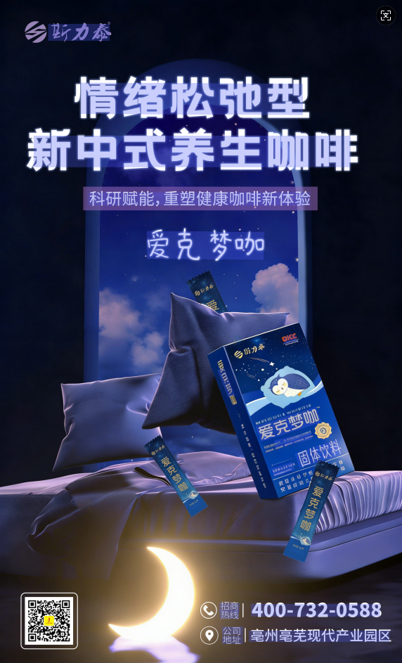 这款依托硬核科研实力打造的斯力泰牌爱克梦咖,以差异化的科研创新定位,开辟“新中式养生咖啡”全新细分赛道,为睡眠经济与咖啡饮品赛道的融合发展提供了可复制的行业样本,更为大健康快消市场开辟了新的增长机遇。凭借企业专利技术、院士团队指导、全产业链质控的核心优势,兼具产品竞争力与市场盈利空间,将成为经销商布局大健康赛道的优选合作项目。